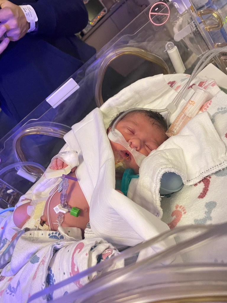 8:54 am. The next thing I knew I was looking at my sweet baby boy through the little window blocking us from seeing the surgery. Too quickly they took Miles away from the screen and started cleaning him up. I had no idea what was going on. I panicked. Dennis was called over to take a picture of him. I still don’t remember much of what happened. I was scared and confused and kept asking Dennis what was going on. They said “we’re taking him to the NICU”. Dennis and I looked at each other and I said what we had already talked about “go”. Dennis was to stay with the baby.