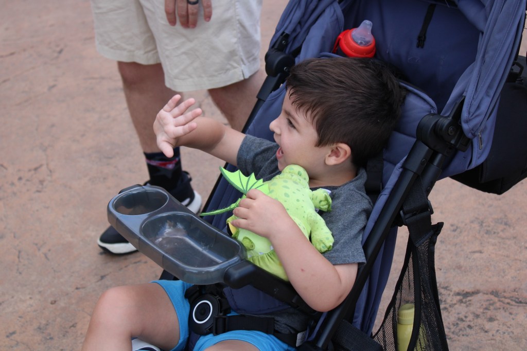 Universal does child swap really well. Miles got to go through the queue with us until we were almost at the ride. Him and one of us waited in the “family room” while the other went on the ride.